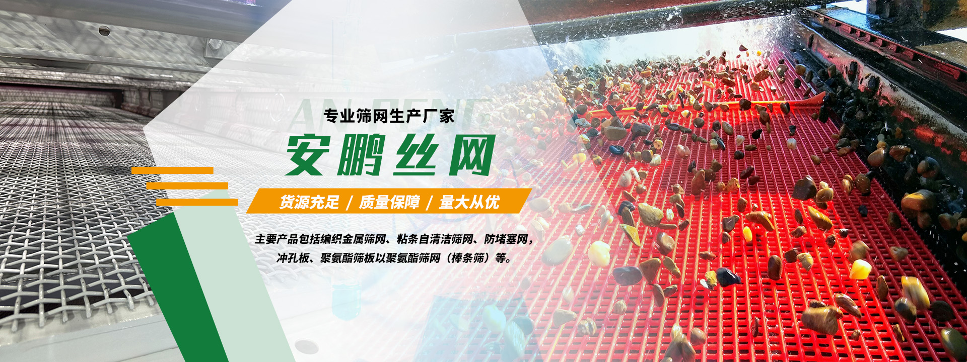 安平縣安鵬絲網(wǎng)過濾器材有限公司,是一家專業(yè)的篩網(wǎng)生產廠家。我們?yōu)楣橇希傻V,建筑以及回收行業(yè)等提供完整且標準化的定制篩分解決方案。我們的主要產品包括編織金屬篩網(wǎng)、粘條自清潔篩網(wǎng)、防堵塞網(wǎng),沖孔板、聚氨酯篩板以聚氨酯篩網(wǎng)(棒條篩)等。 工廠占地345,000平方英尺,擁有25條生產線,20多年來專注于工業(yè)篩網(wǎng)解決方案。安鵬產品采用獨特的原材料處理技術,精確的網(wǎng)孔尺寸和優(yōu)良的網(wǎng)面平整度,保證了篩面的緊實度和耐磨性,從而打造出最強勁的篩網(wǎng)。按照ISO4783:3的標準,我們可以生產A、C、D、E型篩網(wǎng)。我們能夠獨立完成拔絲、軋花、織網(wǎng)、包裝、倉儲和裝箱等工作。我們擁有先進的生產設備,強大的技術團隊和嚴格的質量控制措施,這些優(yōu)勢使得我們公司在篩選解決方案領域成為美國、加拿大和澳大利亞市場上···